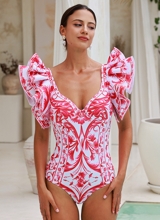 Red Printed One Piece Swimsuit