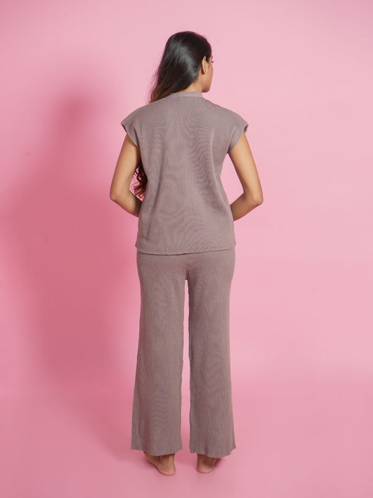 Brown V-Neck Loungewear Set