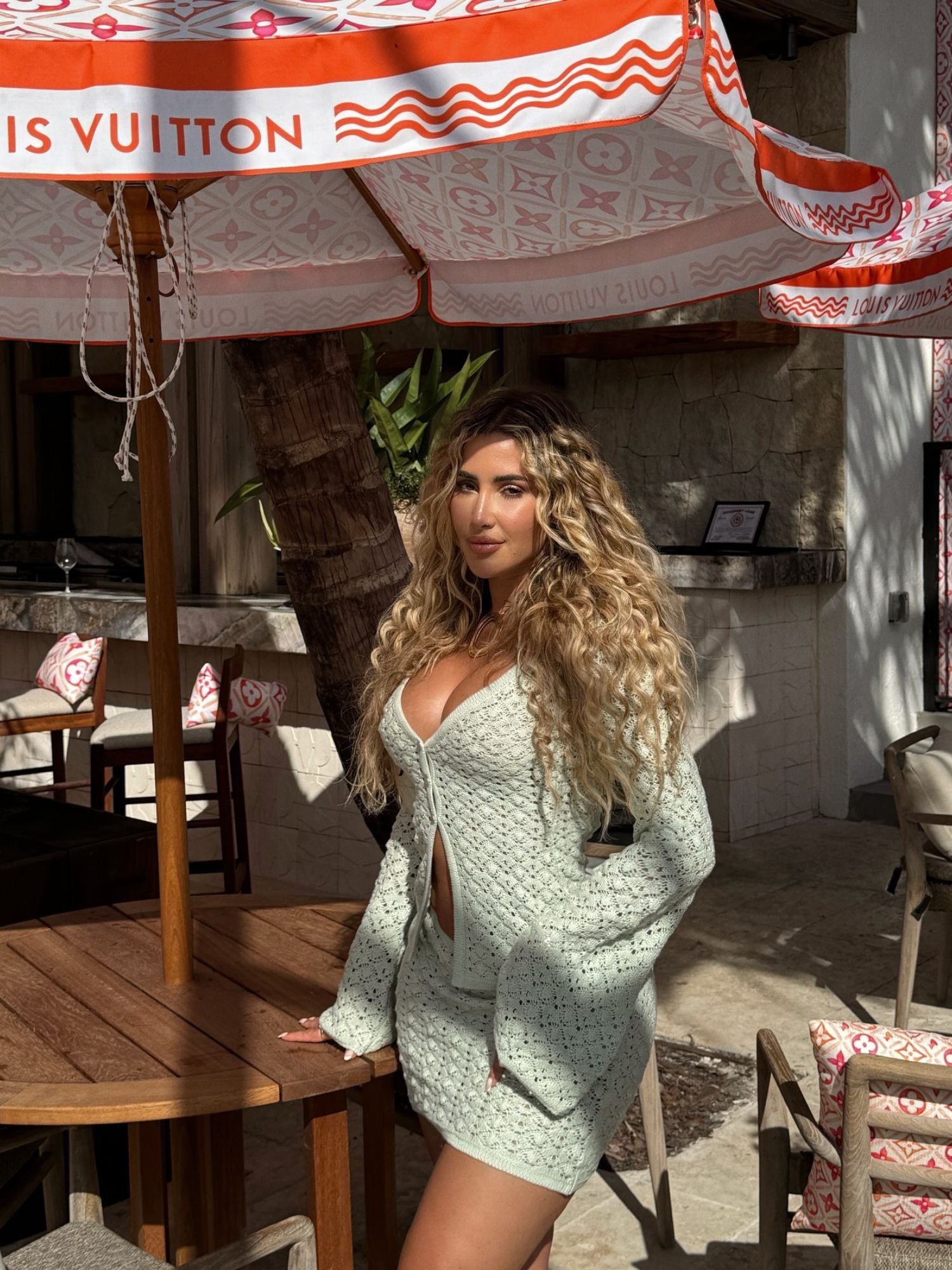 Design: V-neckline with a button-down front, intricate open-knit detailing, and a chic bohemian-inspired look.